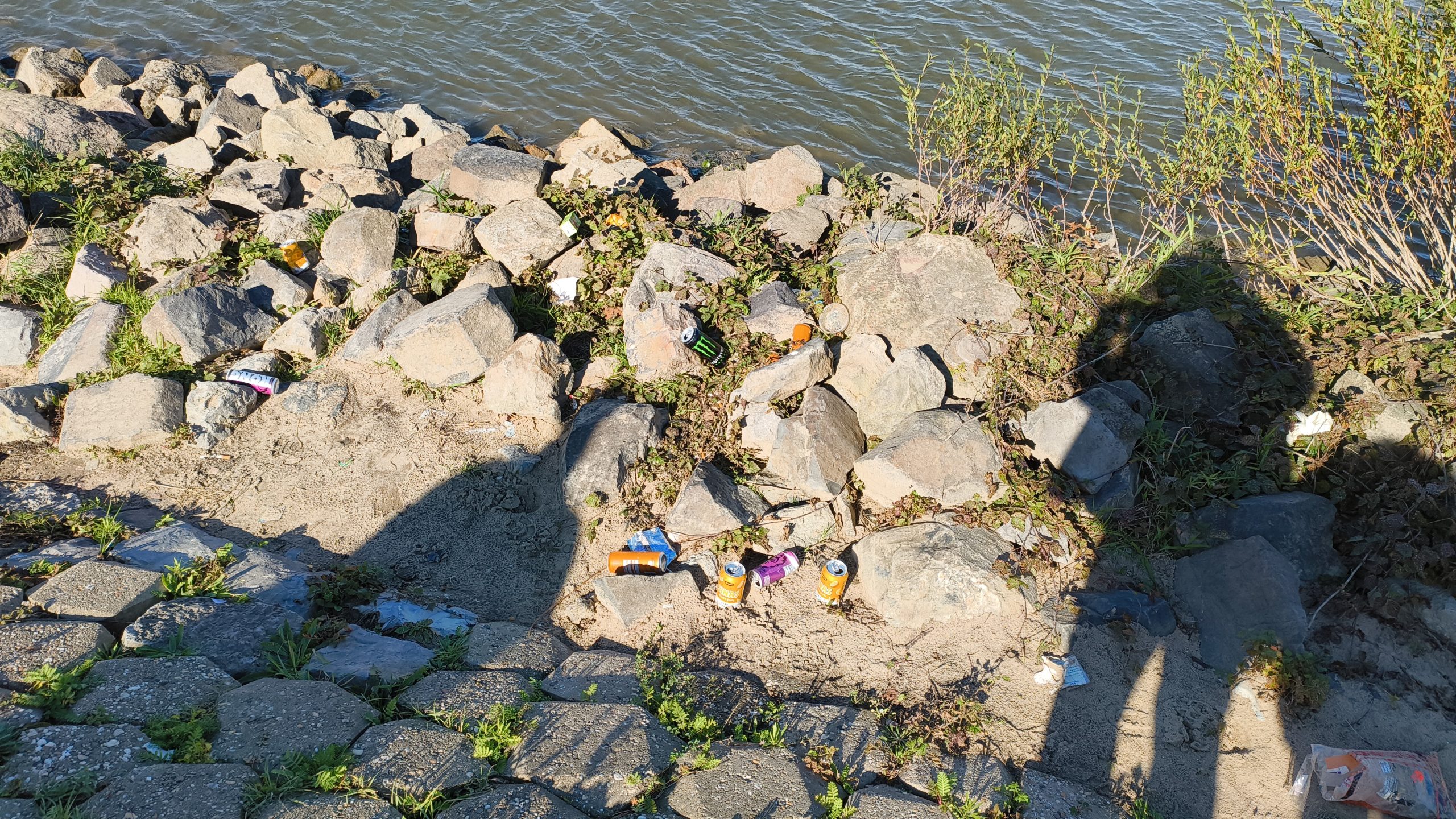 Deze afbeeldingen laten een concreet voorbeeld zien van het werk van GoClean. Langs rivieroevers en in de Westerschelde brengen wij zwerfafval systematisch in kaart om inzicht te krijgen in wat zich ophoopt, waar het vandaan komt en hoe het zich verplaatst via waterstromen.